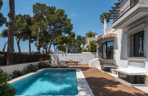 Casa Los Momentos is a refined and spacious 6-bedroom villa for sale located in the highly desirable Altos del Rodeo residential enclave, within Nueva Andalucia, just minutes from Puerto Banús and Marbella's top amenities. Spread across three levels with 315 square meters of built space, this property presents a rare opportunity to enjoy the perfect blend of classic Mediterranean architecture and modern lifestyle comfort on the Costa del Sol. Designed with both elegance and practicality in mind, the home offers five generous bedrooms, including three with private en-suite bathrooms. A sixth room, currently styled as a home office, provides flexibility for use as an additional bedroom, guest room, or creative space. The interiors are thoughtfully curated with bespoke furnishings and quality finishes that reflect a warm, sophisticated ambiance. A private sauna adds to the home's wellness appeal. The villa features a large terrace that connects seamlessly with the private pool, creating an inviting space for outdoor lounging, dining, or hosting. Originally built in 1990, Casa Los Momentos has been recently renovated in 2025 to enhance its traditional architecture with contemporary upgrades. The private garage includes an electric car charging station, offering convenience for eco-conscious living.